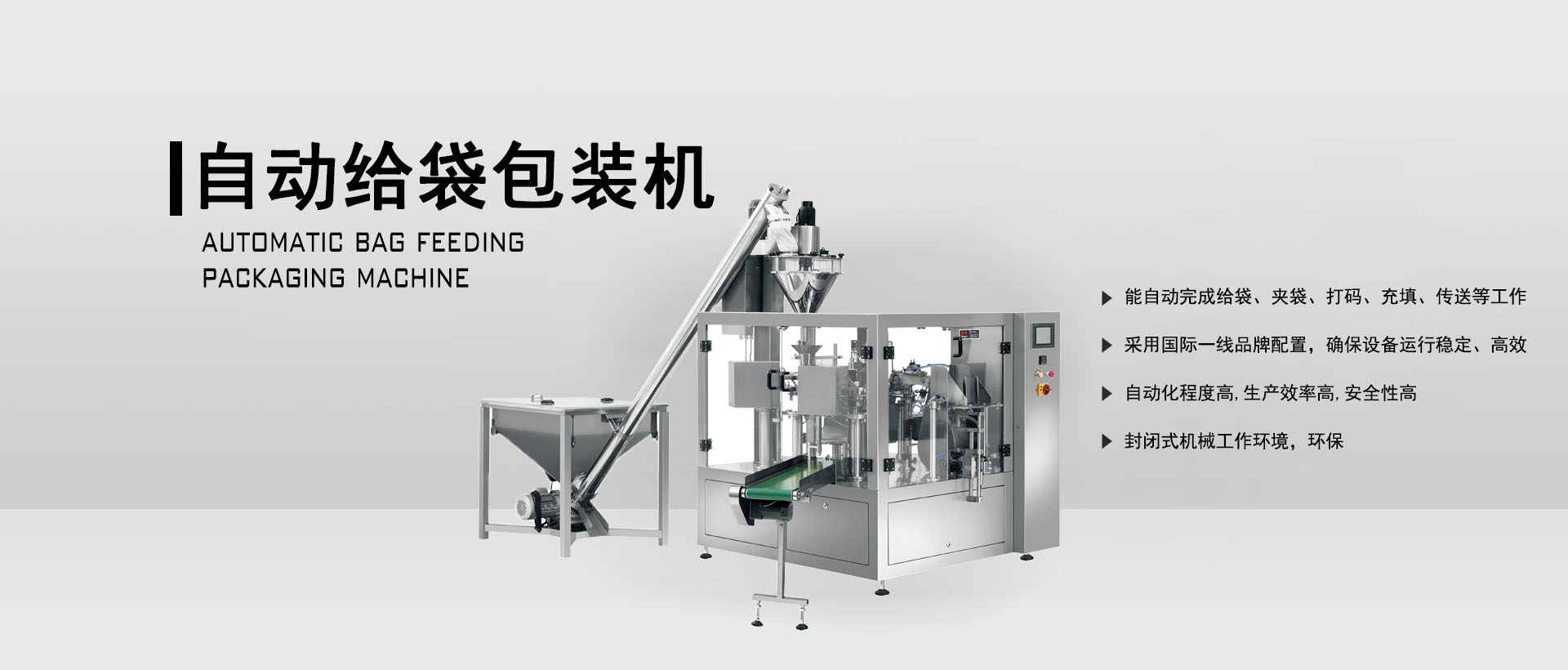 给袋式包装机完成自动给袋、夹袋、计量、充填和传送等工作。