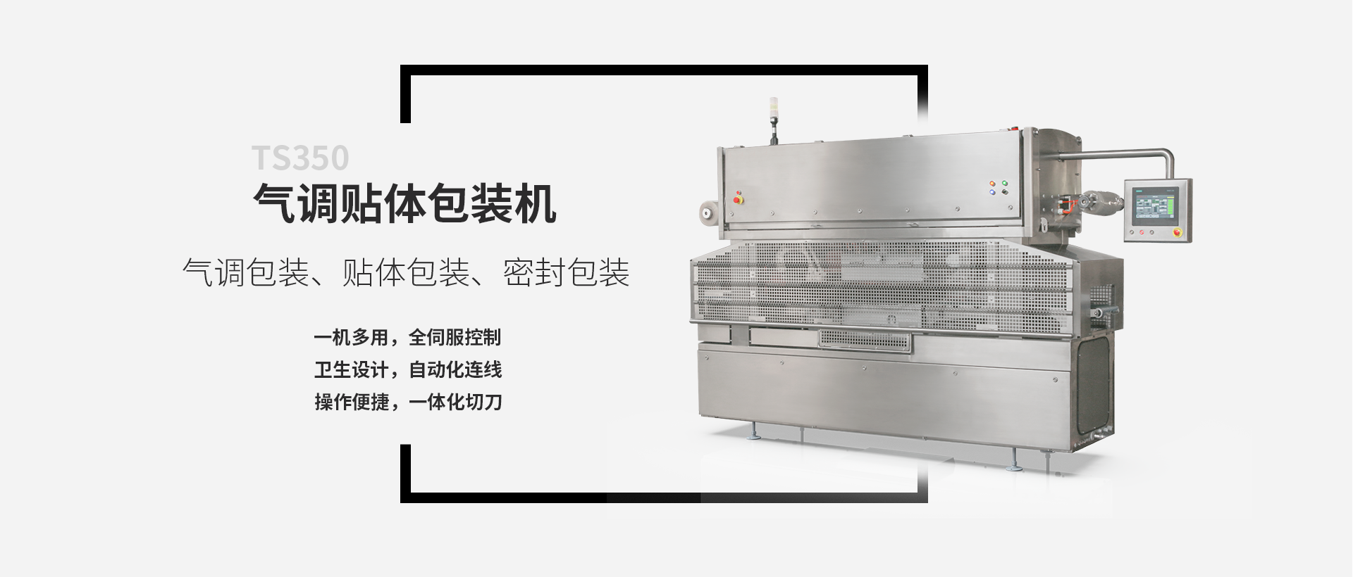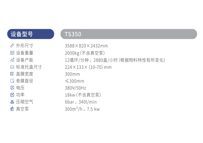 TS350是一款多用途全自动气调贴体包装机,可用于密封包装,气调包装和贴体包装。与传统包装方式相比,气调和贴体包装不但能保持食品的口感和风味,还能有效延长食品的有效期,提高食品附加值。