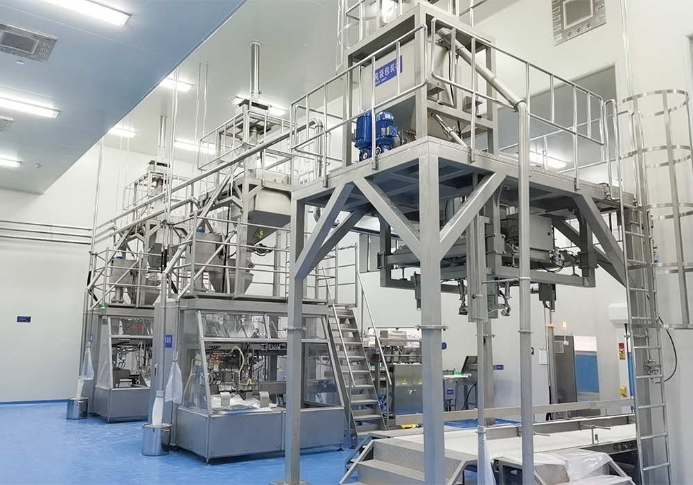 可完成自动上袋、填充、计量、封口、倒袋整型、金属检测、异物检测、喷码及码垛全流程。
