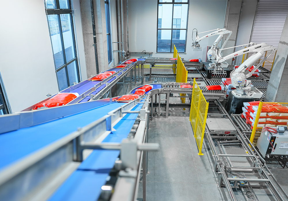 可完成自动上袋、填充、计量、脱气、袋口排气、封口、推倒整型、金属检测、异物检测及码垛全流程。