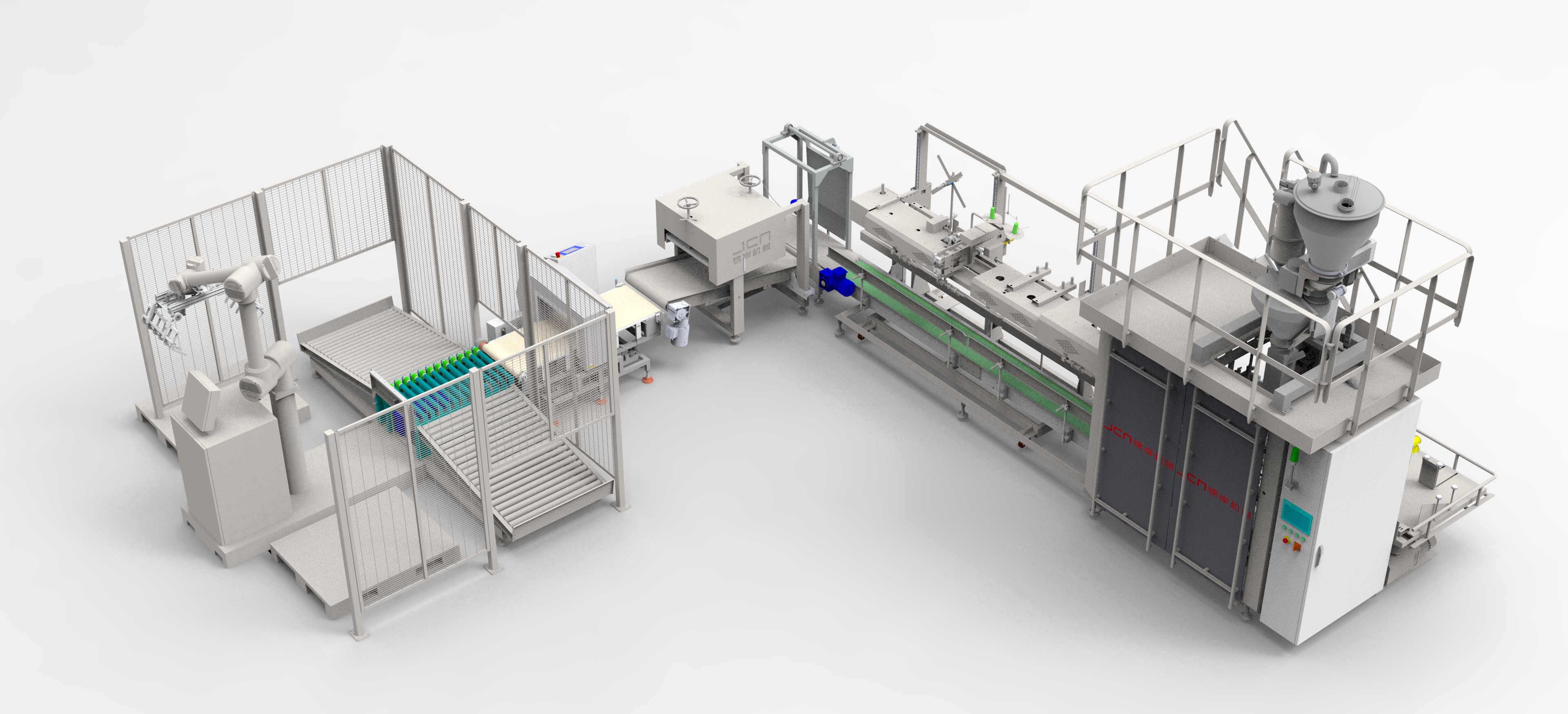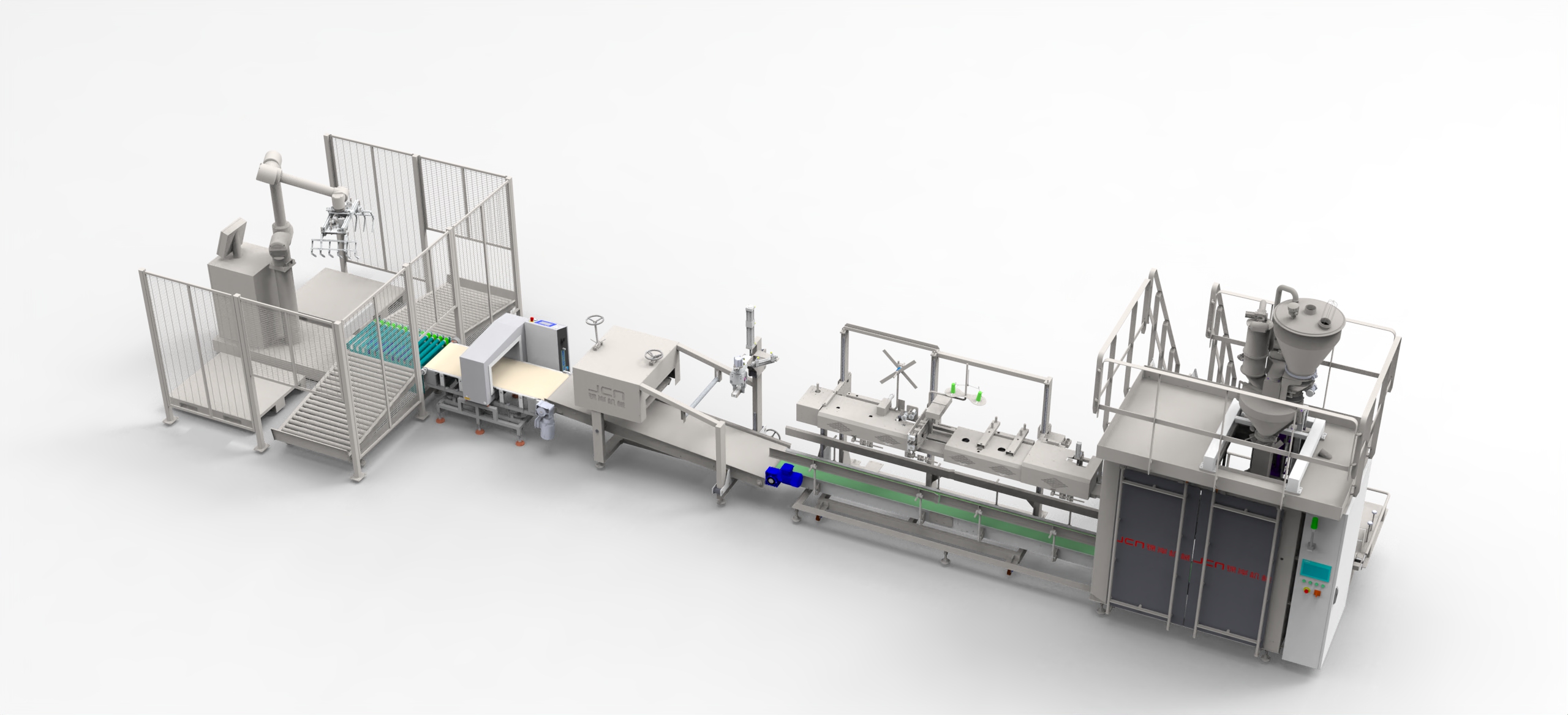 - 全自动上袋式包装产线:覆盖填充、计量、包装、封口、检测、码垛全流程,布局紧凑,可帮助企业优化生产空间配置,提升包装效率,适配规模化生产需求。