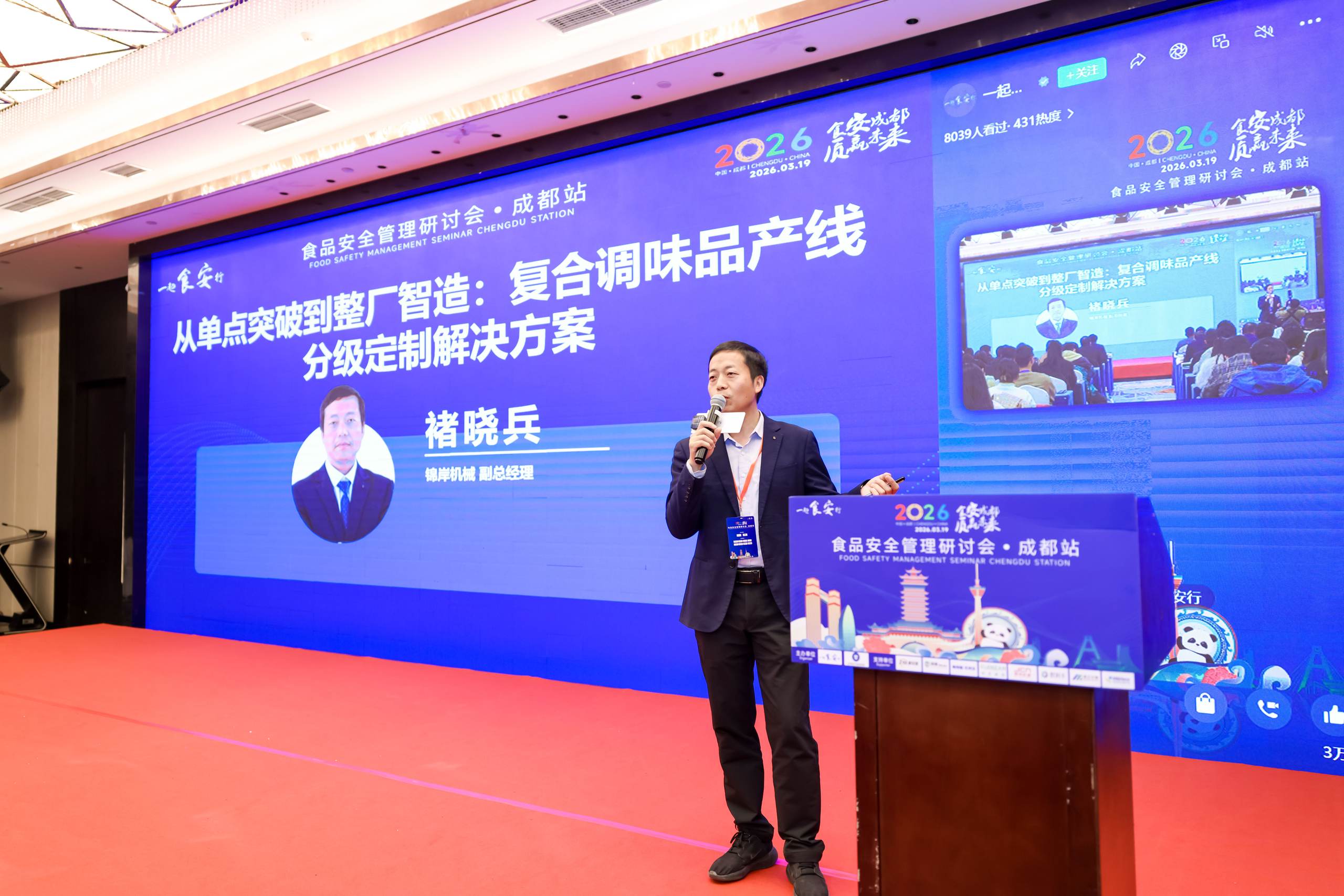 近日,一起食安行食品安全管理研讨会成都站活动成功举办并圆满落下唯幕。本次研讨会聚焦食品产业的核心关切,深入探讨了如何通过前沿理念与扎实实践筑牢食品安全防线。作为深耕食品加工装备领域、致力于为客户提供卫生高效解决方案的践行者,JCN锦岸机械科技江苏有限公司(以下简称“锦岸机械”)作为一起食安行技术成员单位应邀出席本次盛会,并以“从单点突破到整厂智造: 复合调味品产线分级定制解决方案”为主题分享了我们的洞察与成果,与业内专家及同仁共话食安未来。